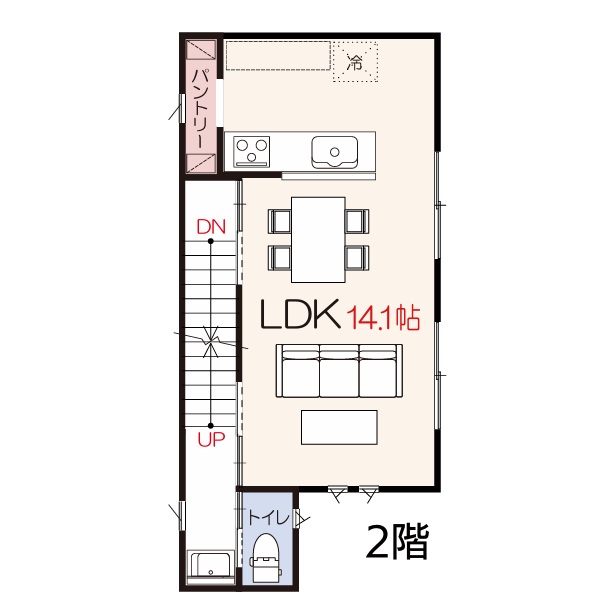 | 設備・条件 | トイレ2か所/駐車場あり/サービスルーム(納戸)/リビングに階段あり/対面キッチン/パントリー/バス・トイレ別/洗濯機置き場/独立洗面台/ | ||