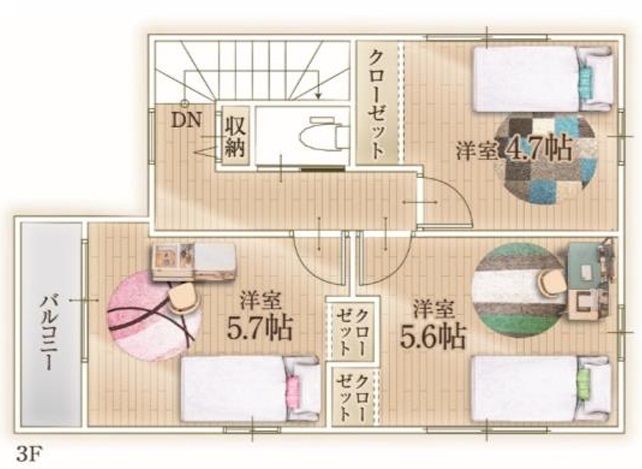 | 間取り/間取り詳細 | 4LDK 洋室6.75帖 / LDK20.8帖 / 洋室5.7帖 / 洋室5.6帖 / 洋室4.7帖 | 築年月 | 2025年5月 |