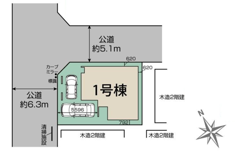| 接道1 | 北西側 公道 幅員6.2m | ||