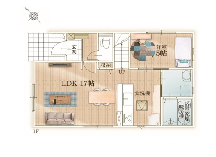 | 設備・条件 | 前道6m以上/トイレ2か所/駐車場2台以上/24時間換気システム/TVモニタ付インターホン/間取り変更可能/リビングダイニング15畳以上/リビングに階段あり/対面キッチン/食器洗い乾燥機/コンロ3口以上/浴室乾燥機あり/バス・トイレ別/洗濯機置き場/独立洗面台/バルコニー/床下収納/フラット35利用可/ | ||