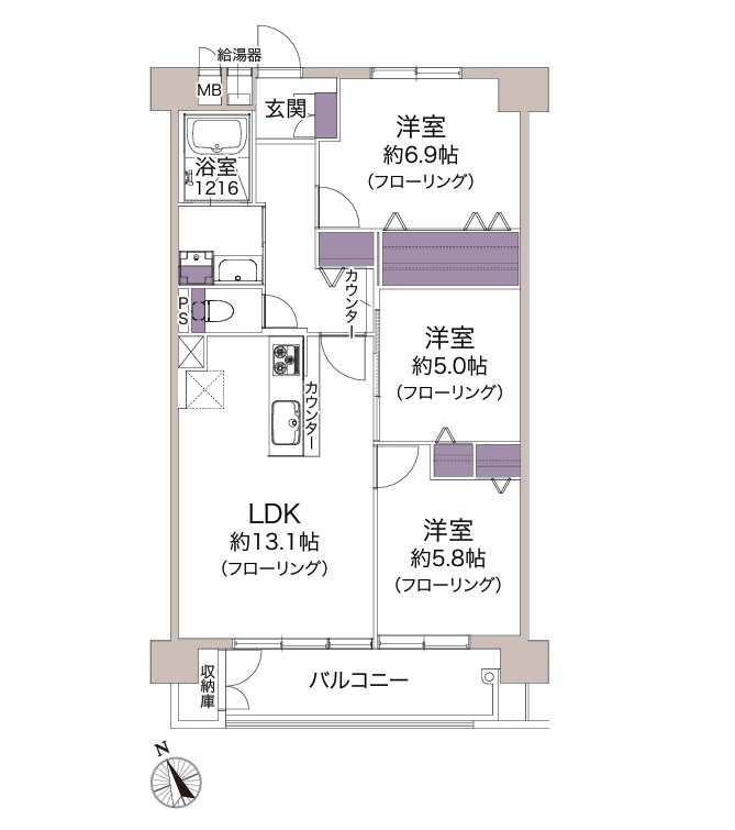 | 間取り/間取り詳細 | 3LDK / LDK13.1帖 / 洋室6.9帖 / 洋室5.8帖 / LDK5.0帖 | ||