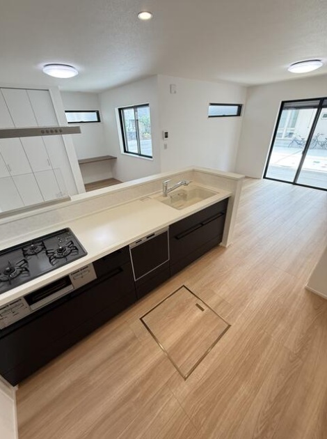 | 設備・条件 | 南道路/トイレ2か所/駐車場2台以上/宅配ボックス/24時間換気システム/TVモニタ付インターホン/照明器具付き/冷暖房/リビングダイニング15畳以上/カウンターキッチン/システムキッチン/食器洗い乾燥機/コンロ3口以上/浴室乾燥機あり/追い焚き/バス・トイレ別/洗濯機置き場/独立洗面台/シャンプードレッサー/バルコニー/床下収納/シューズインクローゼット/ | ||