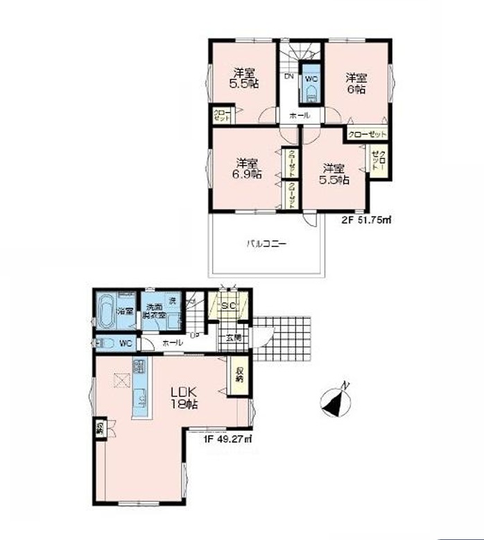 | 間取り/間取り詳細 | 4LDK / LDK18帖 / 洋室6.9帖 / 洋室6帖 / 洋室5.5帖 / 洋室5.5帖 | ||