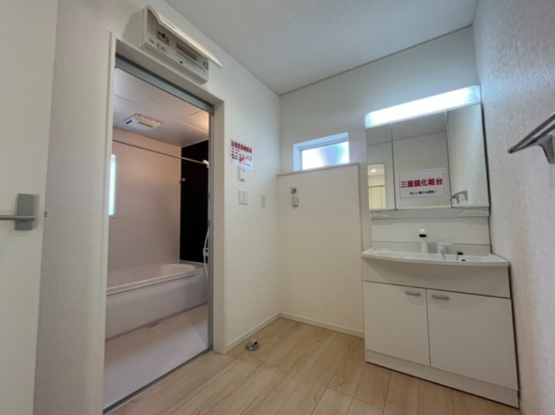 | 設備・条件 | 平坦地/制震構造/住宅性能評価付き/南道路/トイレ2か所/駐車場2台以上/24時間換気システム/TVモニタ付インターホン/防犯カメラ/人感センサー/照明器具付き/リビングダイニング15畳以上/対面キッチン/カウンターキッチン/システムキッチン/給湯/コンロ3口以上/浴室乾燥機あり/バス・トイレ別/洗濯機置き場/独立洗面台/シャワートイレ/シャンプードレッサー/ルーフバルコニー/床下収納/クローゼットシューズボックス/フローリング/フラット35利用可/ | ||