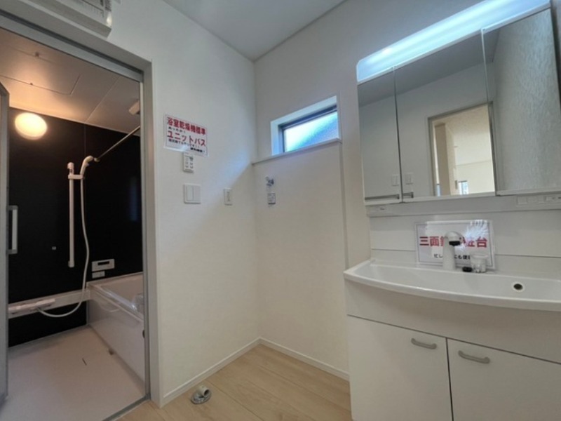 | 設備・条件 | 平坦地/制震構造/住宅性能評価付き/南道路/トイレ2か所/駐車場2台以上/24時間換気システム/TVモニタ付インターホン/防犯カメラ/人感センサー/照明器具付き/リビングダイニング15畳以上/カウンターキッチン/システムキッチン/給湯/コンロ3口以上/浴室乾燥機あり/バス・トイレ別/洗濯機置き場/独立洗面台/シャワートイレ/シャンプードレッサー/バルコニー/床下収納/クローゼットシューズボックス/フローリング/フラット35利用可/ | ||