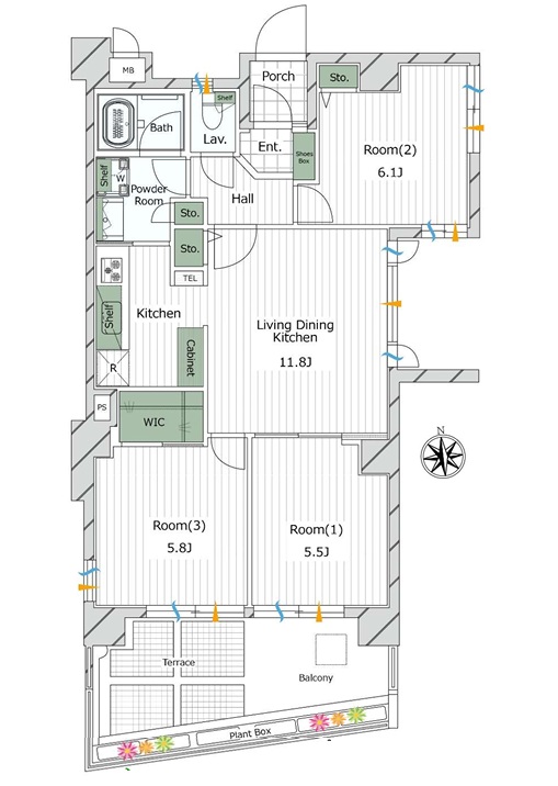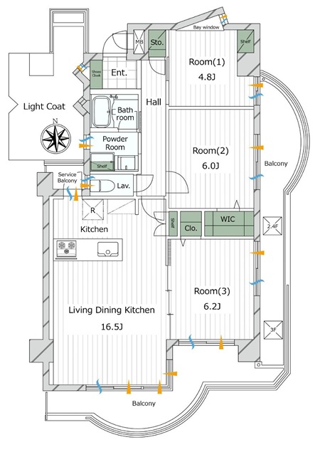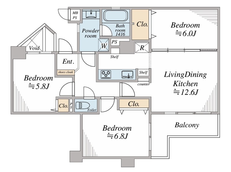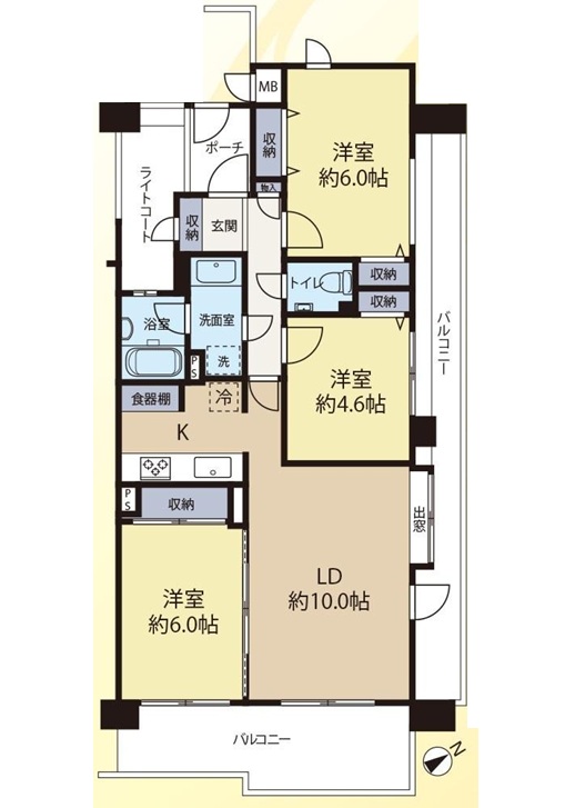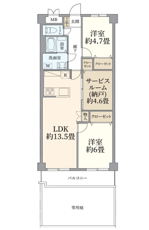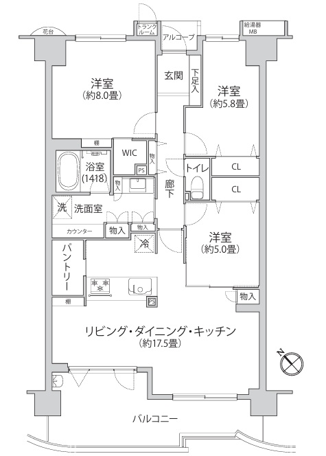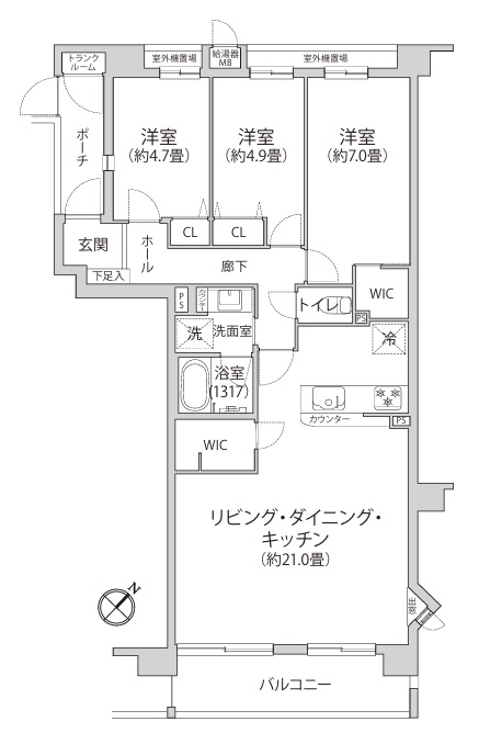 バルコニーにトランクルーム・スロップシンク有 収納豊富 南西向きにつき陽良好・・・
