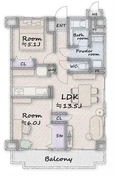 0万円 2LDK 鉄筋コンクリート南向き